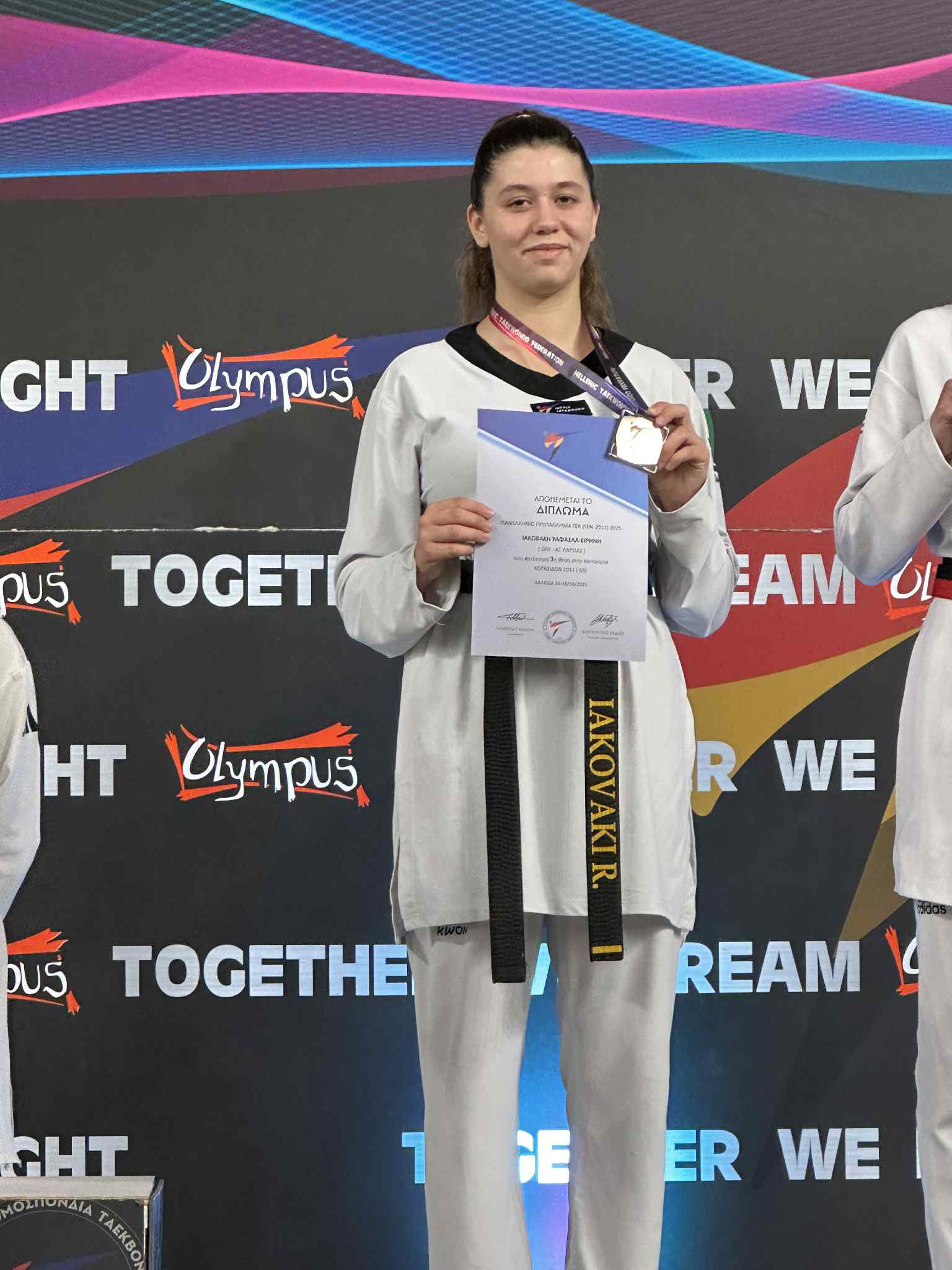 Μετά την ολοκλήρωση των αγώνων, πραγματοποιήθηκε η απονομή των κυπέλλων για τους τρεις πολυνίκης συλλόγους του Πανελλήνιου Πρωταθλήματος Εφήβων - Νεανίδων, που διεξήχθη τον Μάιο στην Θεσσαλονίκη. Ο Αθλητικός Σύλλογος Ταεκβοντό Λάρισας κατέλαβε την 3η θέση πανελλαδικά, χάρη στις εντυπωσιακές επιτυχίες της Χριστιάνας Ιακωβάκη και του Γιώργου Ζμπήτα, οι οποίοι κατέκτησαν δύο χρυσά μετάλλια.