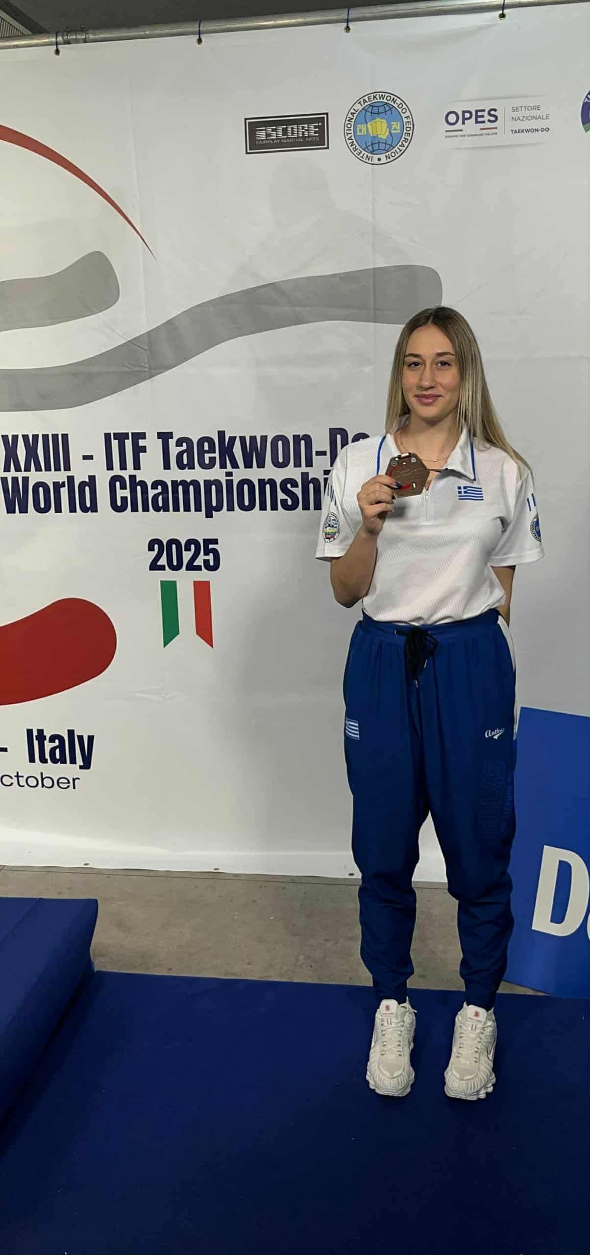 Η 16χρονη αθλήτρια κατέκτησε την 1η θέση με το ομαδικό και την 3η θέση στο ατομικό στο Παγκόσμιο Πρωτάθλημα Ταεκβοντό ITF